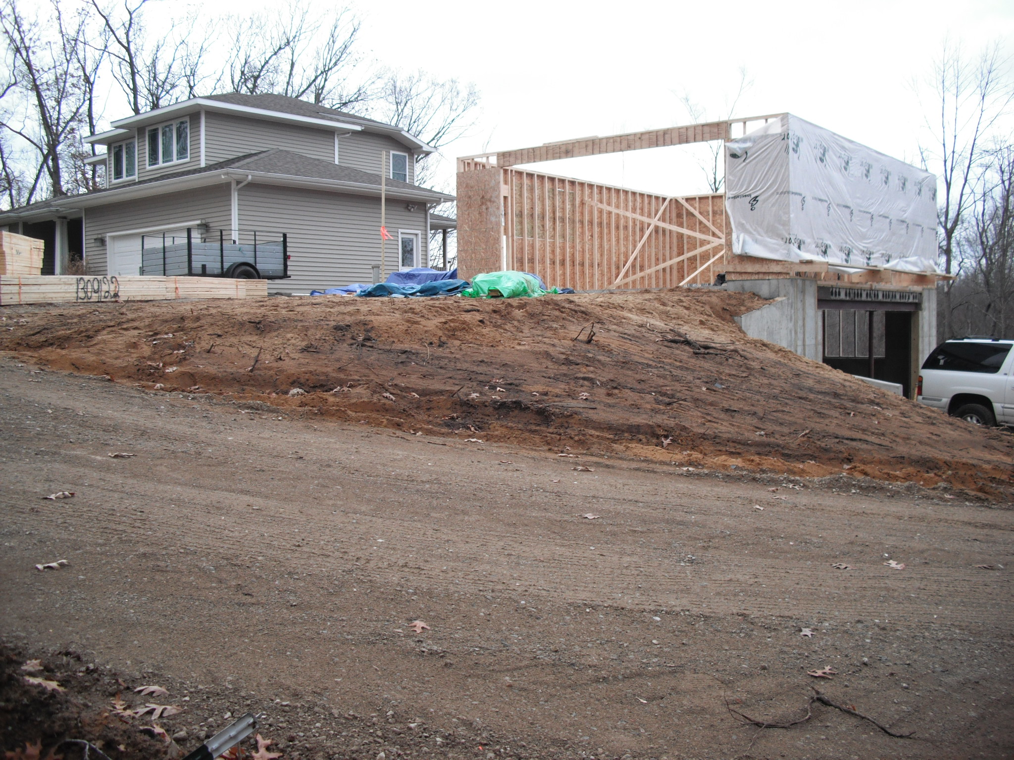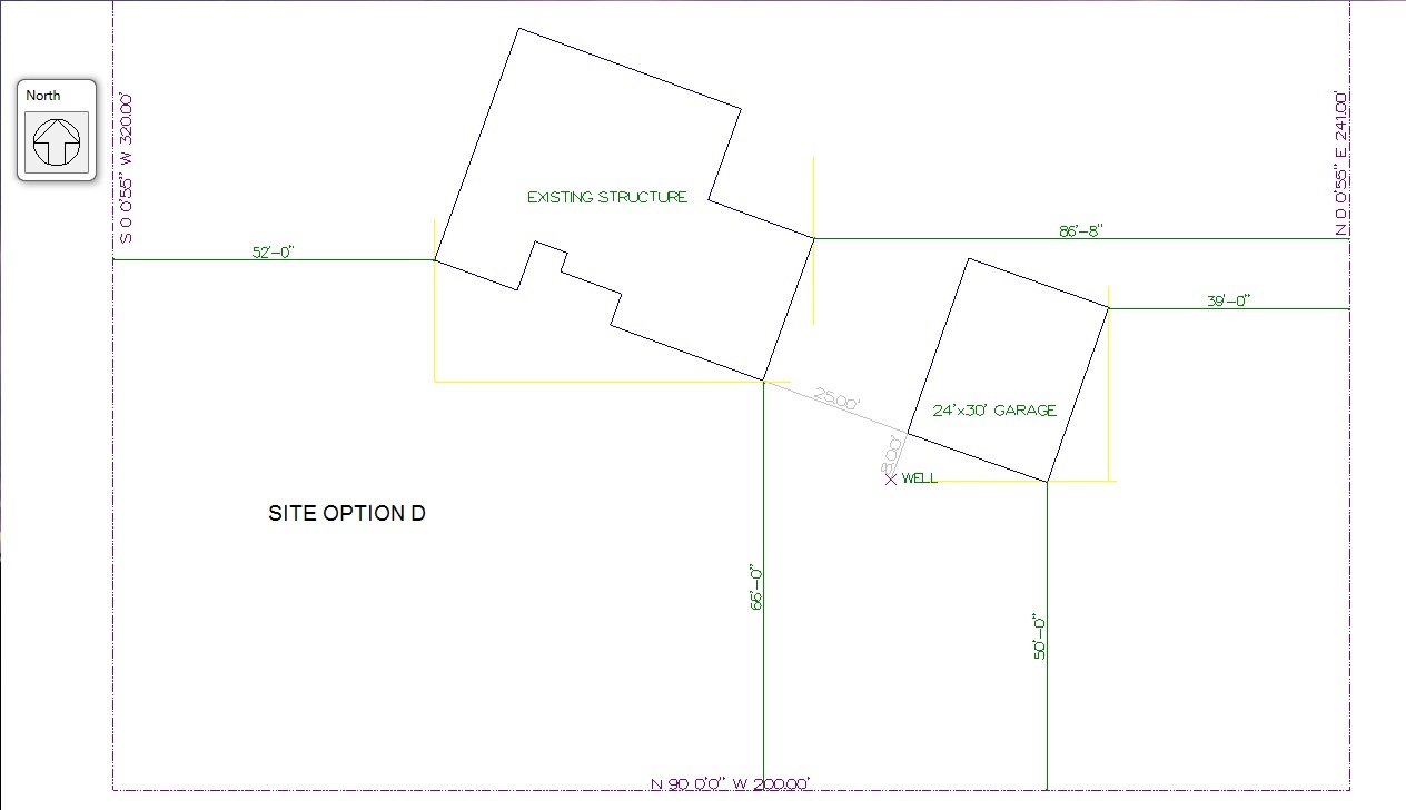 Site Rendering with 24×30 Two Level Garage with approx. topography and drive locations