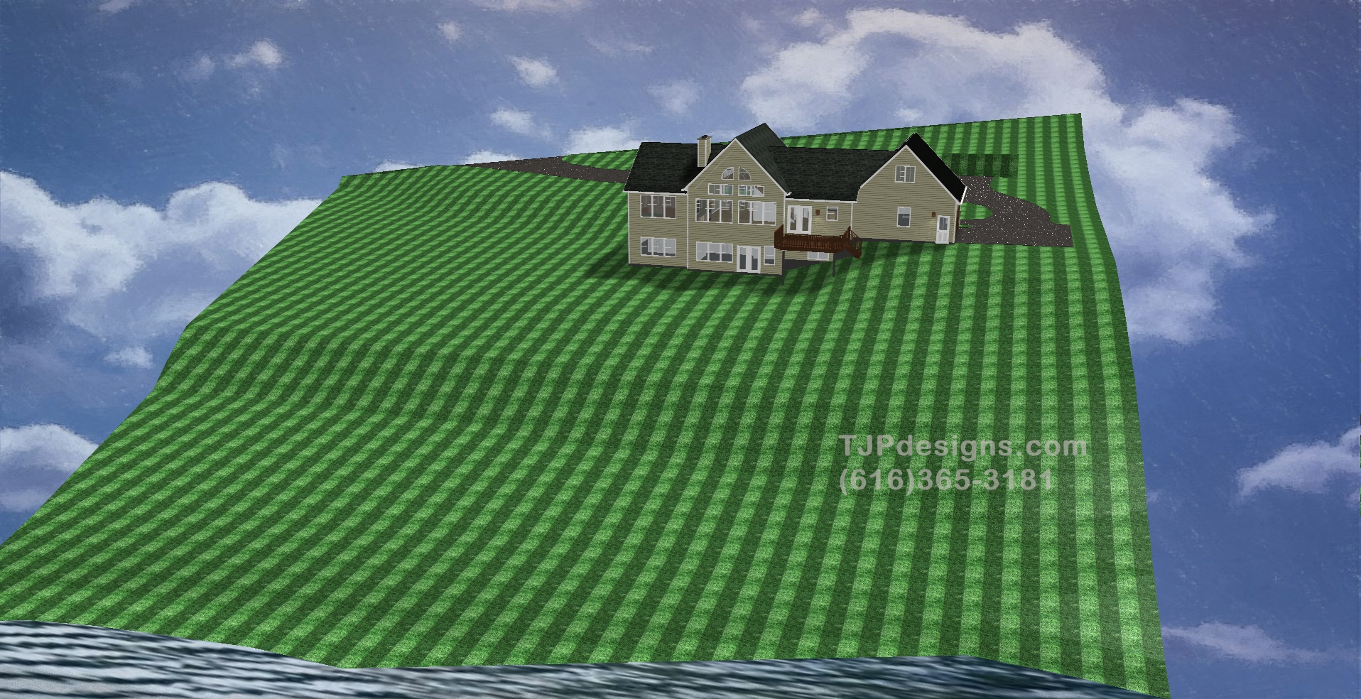 - Site Rendering with 24×30 Two Level Garage with approx. topography and drive locations